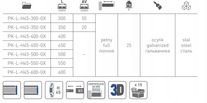 Prowadnica GTV VERSALITE GX z DOMYKIEM 400 -25kg