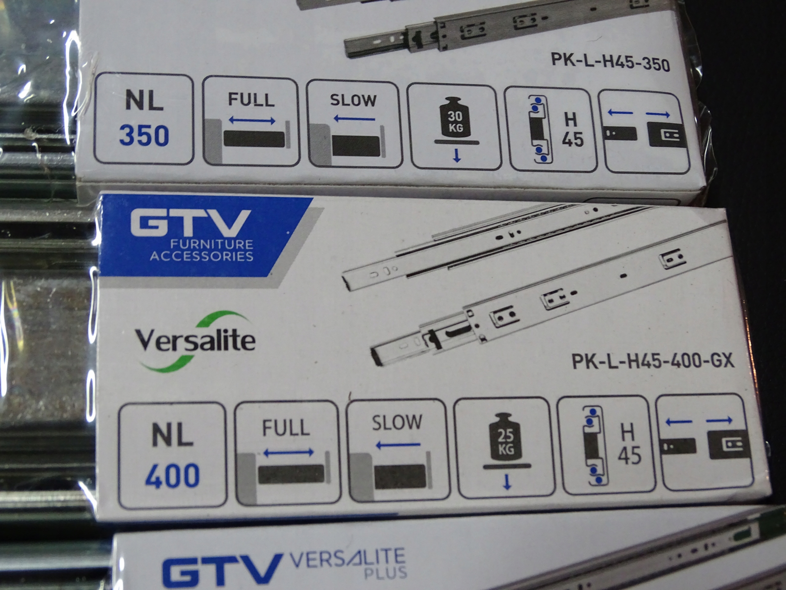 Obciążenie: Aby szuflada nie odkształcała się w trakcie użytkowania, i zamykała się płynie. Prowadnica kulkowa Versalite Plus ze spowalniaczem przygotowana jest pod maksymalny ciężar 30 kg.