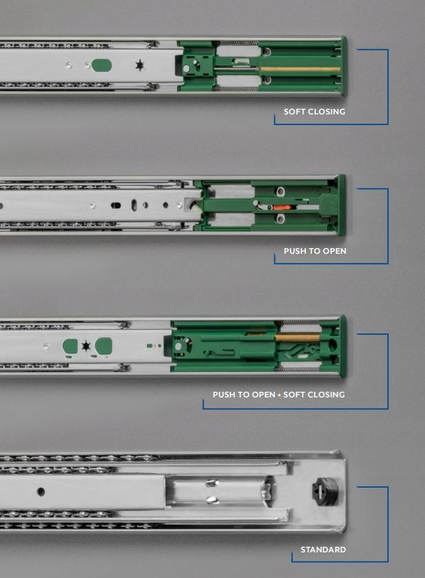 Obciążenie: Aby szuflada nie odkształcała się w trakcie użytkowania, i zamykała się płynie. Prowadnica kulkowa Versalite przygotowana jest pod maksymalny ciężar 25kg.